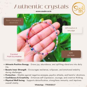 - Black Tourmaline reinforces the protective aspect of the aura, acting as a safeguard against external negative influences while supporting emotional well-being.