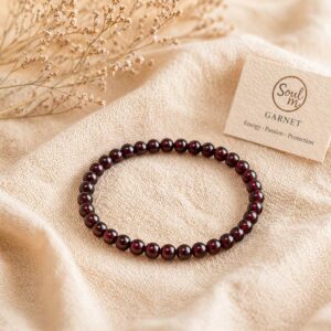 Opalite is thought to have a calming effect that can aid in achieving restful sleep. It may also enhance dream recall and encourage lucid dreaming, helping to access deeper insights during the night. While the metaphysical properties of opalite are widely appreciated in crystal healing communities, it's important to note that these benefits are based on spiritual beliefs and anecdotal experiences. If you wear an opalite bracelet, it can serve as a daily reminder of your emotional well-being, self-growth, and connection to your higher self.Garnet Bracelet (4mm)