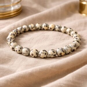 A Communication, Wisdom & Heart Chakra Bracelet featuring Lapis Lazuli and Malachite offers a balanced combination for anyone seeking to enhance their communication skills while fostering emotional healing and wisdom. Lapis Lazuli promotes clear and articulate expression, intellectual insight, and truthful communication, while also opening the heart to intuitive wisdom. Malachite complements this by supporting emotional healing, compassionate expression, and the release of emotional blockages, ensuring that your words come from a place of love and empathy. Together, these stones create a harmonious energy that encourages deep, meaningful connections, clear communication, and heart-centered wisdom in all areas of life.Dalmatian Jasper Bracelet
