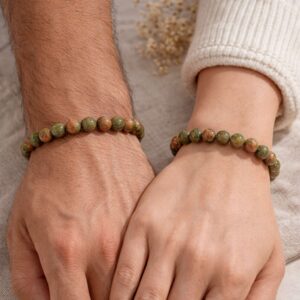 ⚖️ Balances energy flow – Grounding (Jasper) + amplification (Quartz) combo