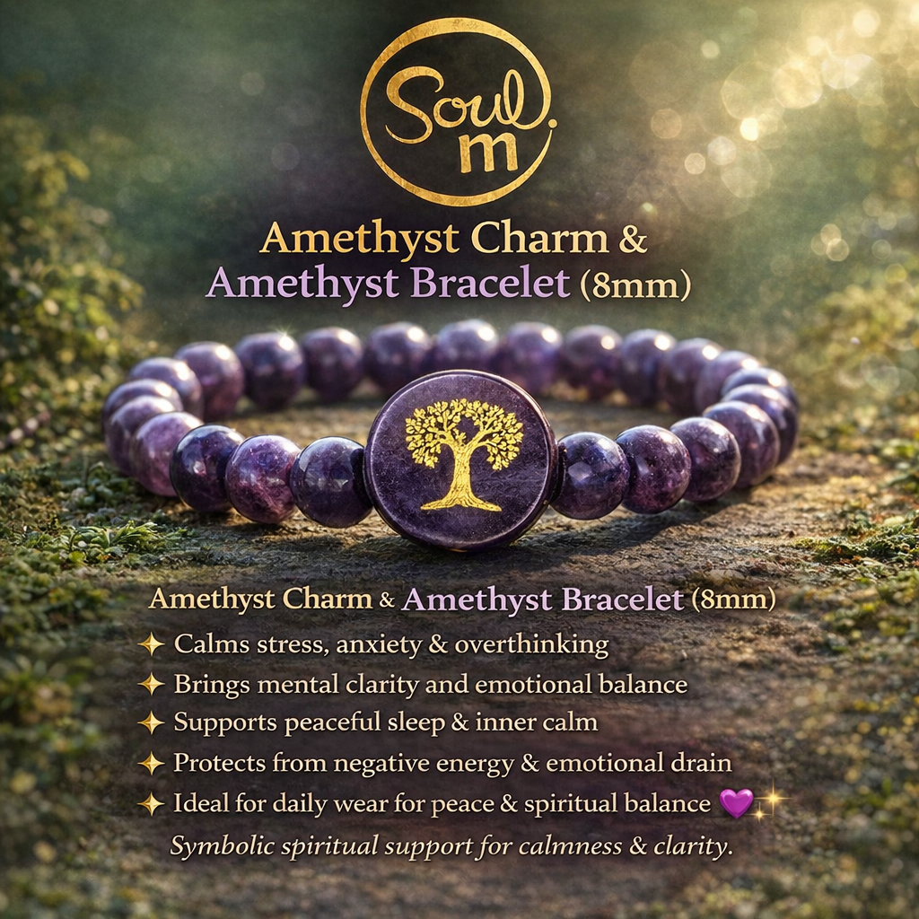 🌟 Amethyst charm – Amplifies peace, protection and spiritual energy