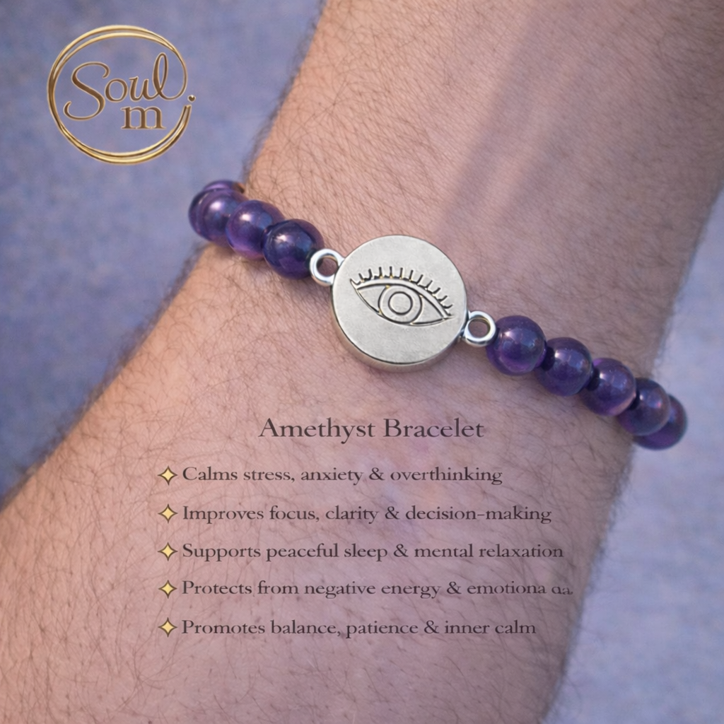 Amethyst Evil Eye Bracelet (8mm) benefits 💜🧿