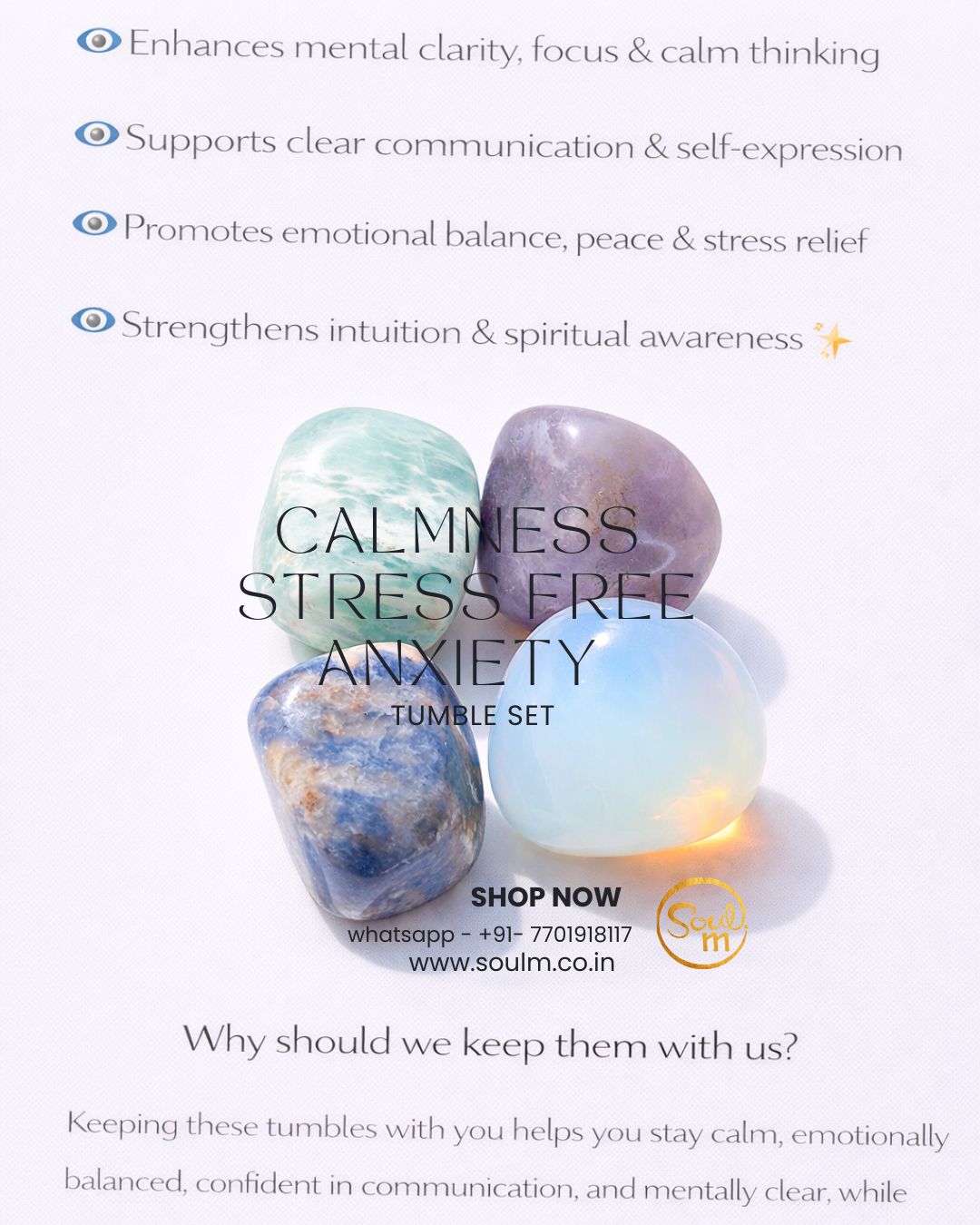 Keeping these tumbles with you helps you stay calm, emotionally balanced, confident in communication, and mentally clear, while creating a soothing protective energy that supports you throughout the day ๐โจ