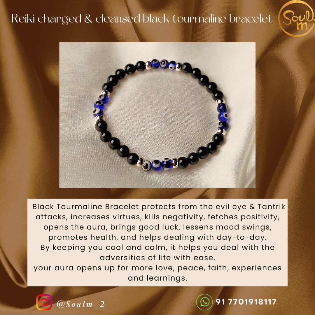 Black Tourmaline Evil Eye Bracelet (6mm)