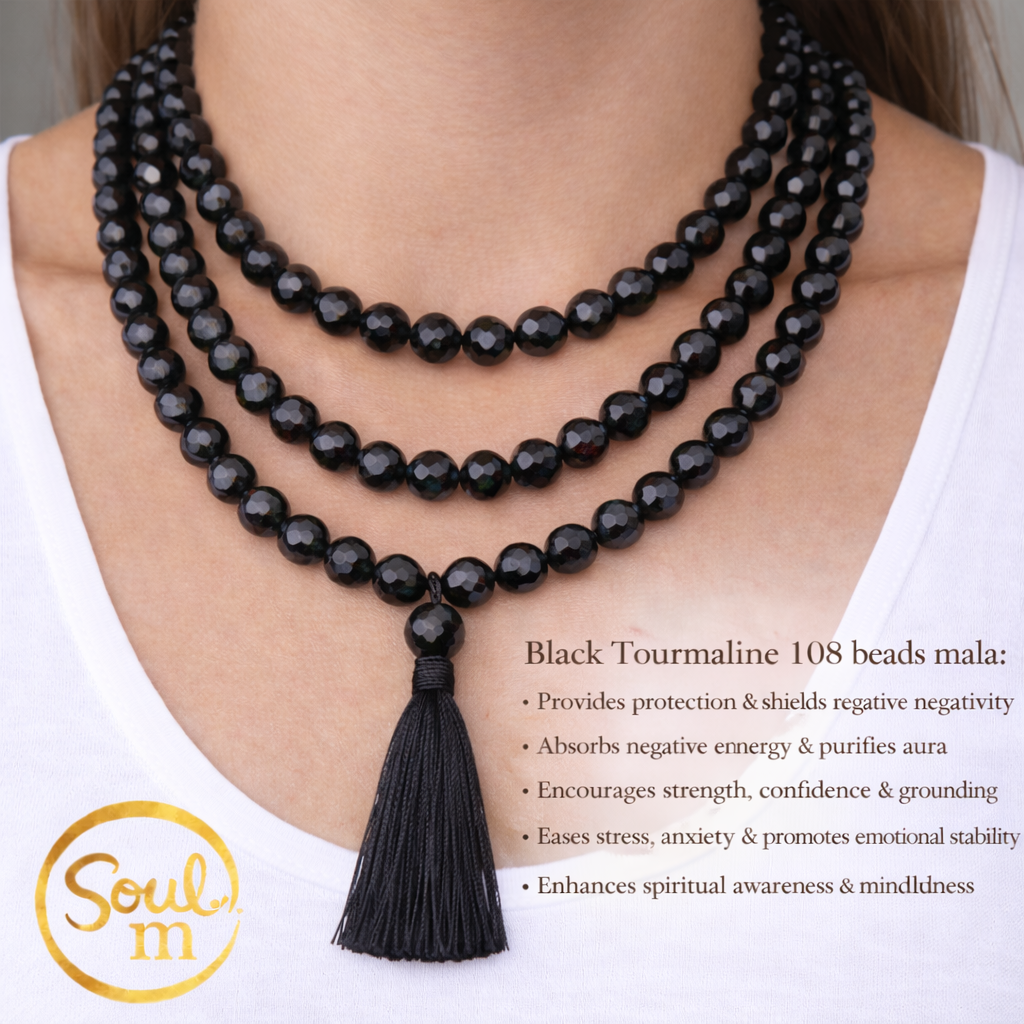 Black Tourmaline Faceted Mala (108 beads) benefits 🖤📿