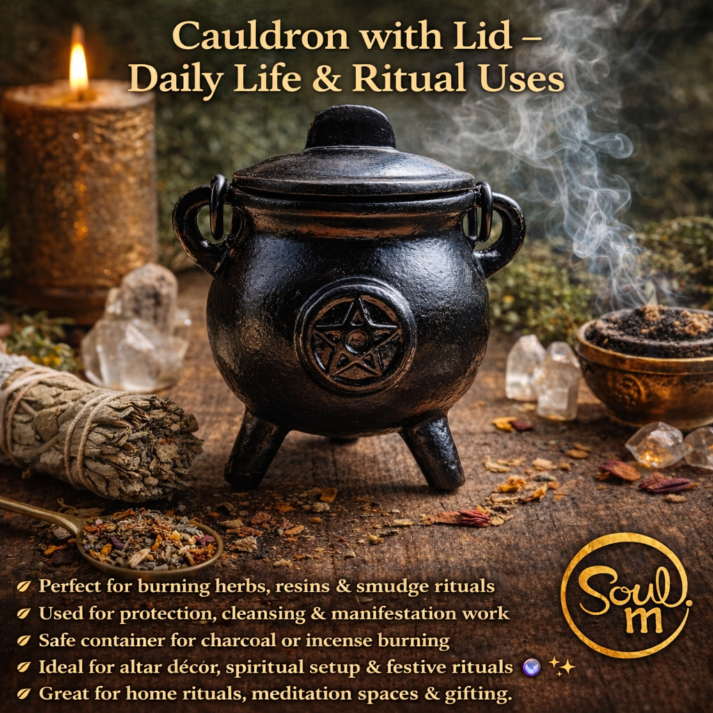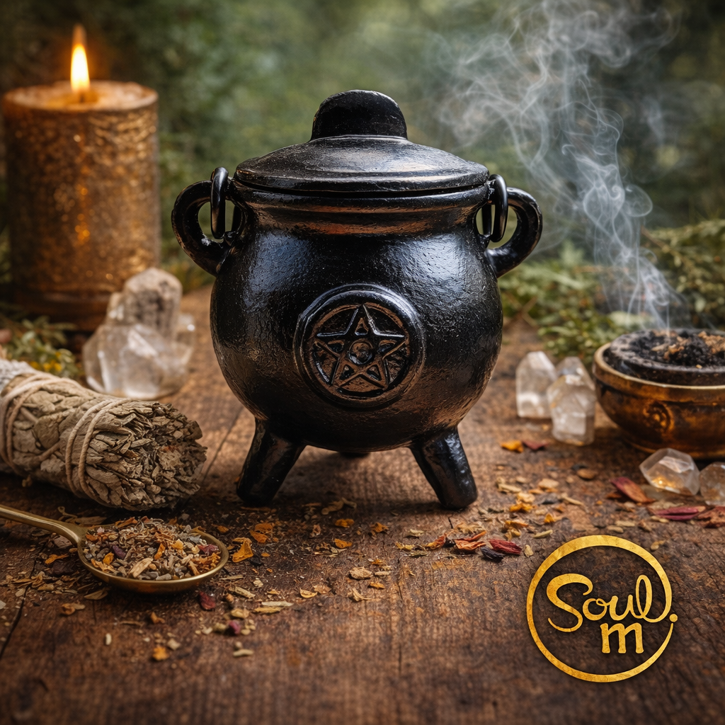 🕯 Intention rituals – Write intentions and safely burn them inside the cauldron