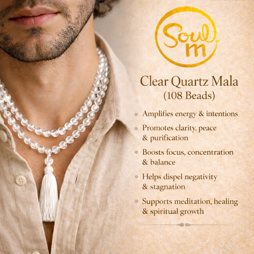 Clear Quartz Mala (108 beads) benefits 🤍📿