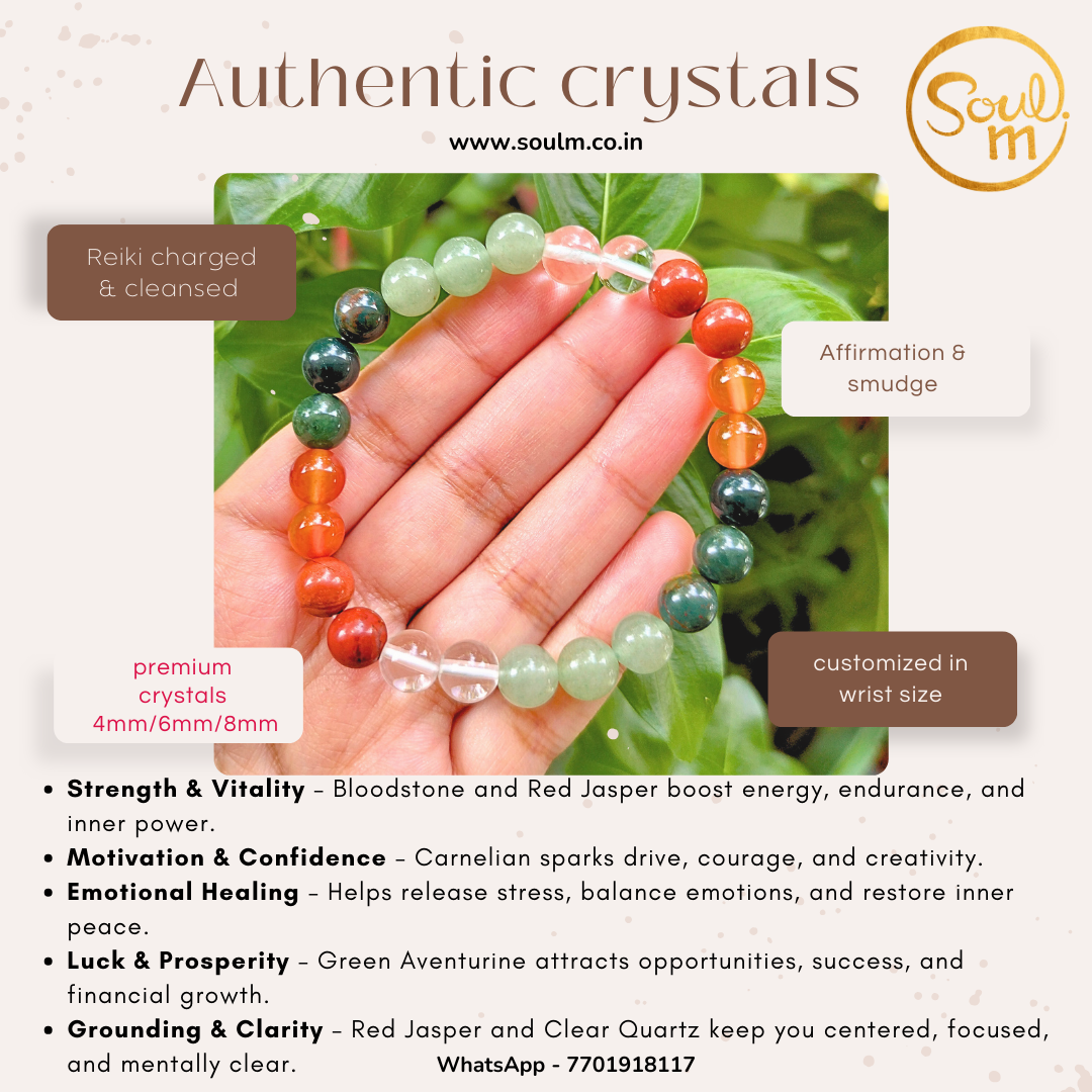 Strength & Vitality – Bloodstone and Red Jasper boost energy, endurance, and inner power.