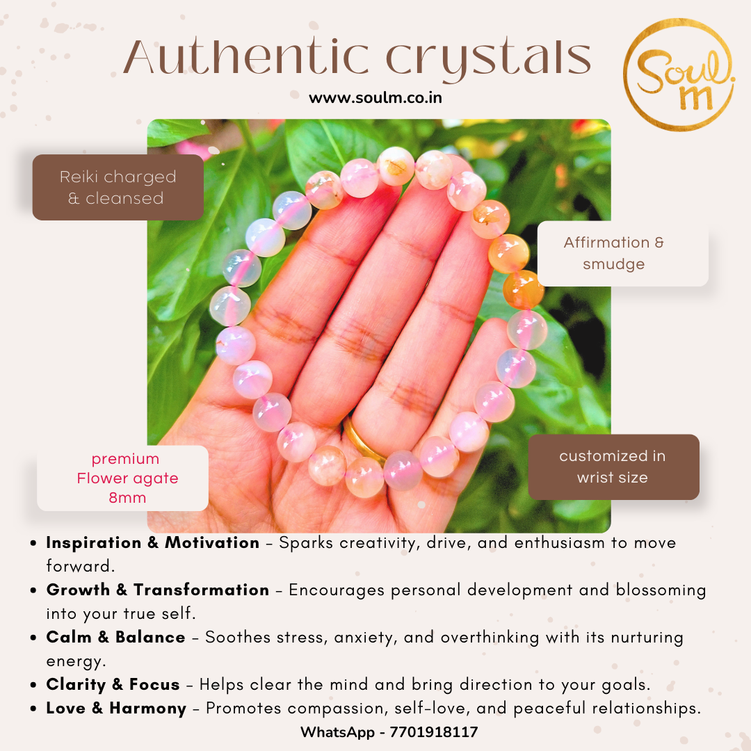 Flower Agate Crystal Bracelet| Reiki Charged by Healers