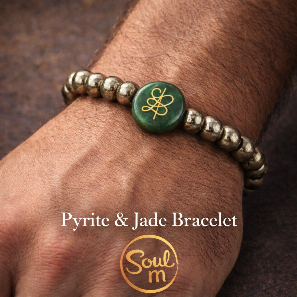 Green Jade Charm & Pyrite Bracelet (8mm) 💚💛✨