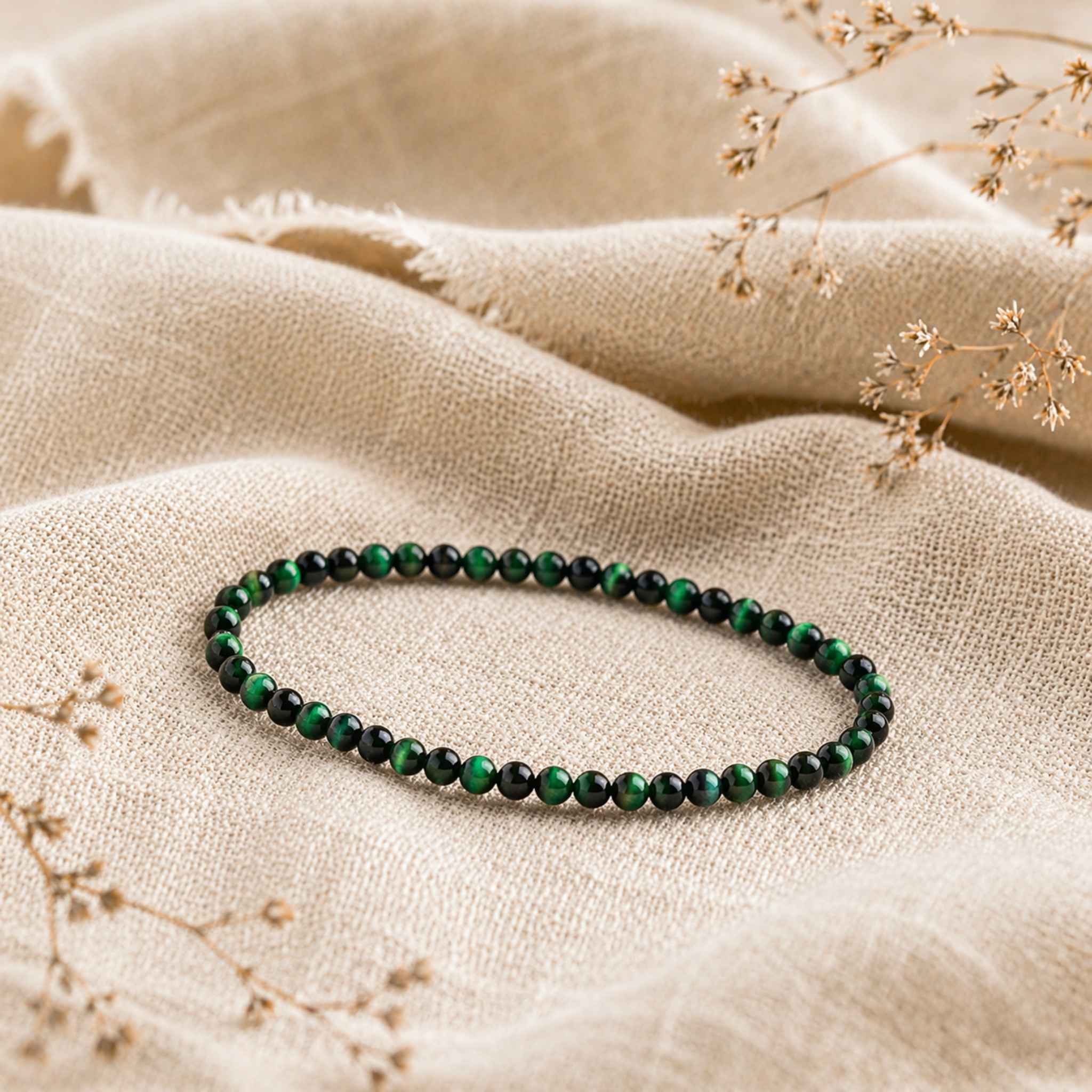 Green Tiger’s Eye Crystal Bracelet (4mm)