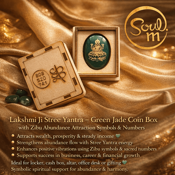 Lakshmi Ji Stree Yantra – Green Jade Coin Box with Zibu Abundance Attraction Symbols & Numbers 💚🪙✨