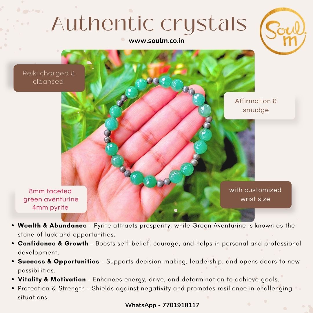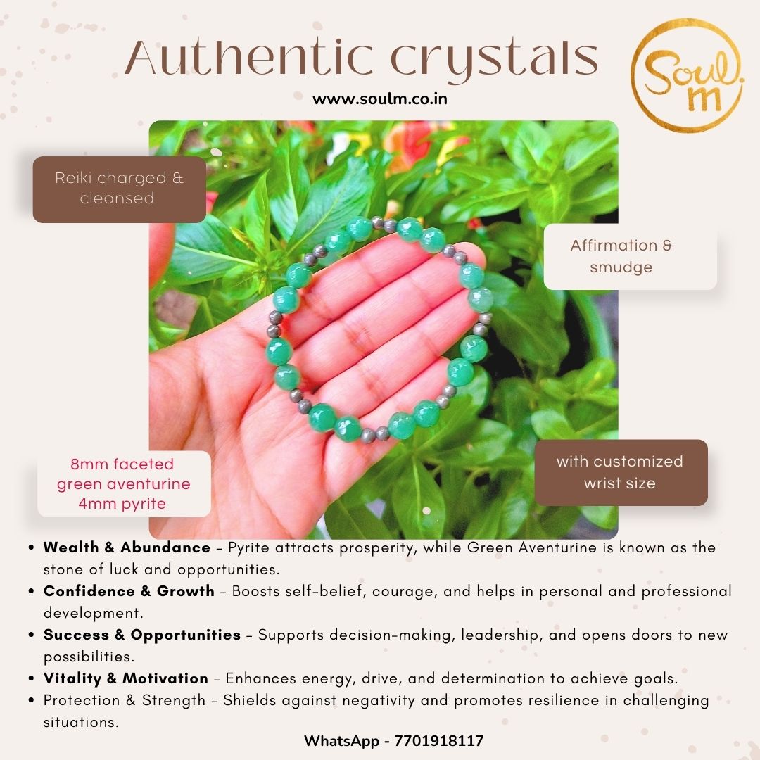 - Wealth & Abundance – Pyrite attracts prosperity, while Green Aventurine is known as the stone of luck and opportunities.