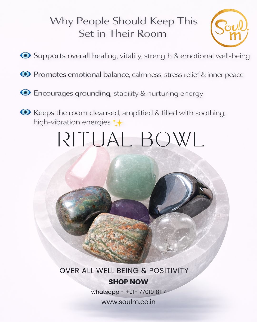 1️⃣ Keep crystals in the selenite bowl for cleansing