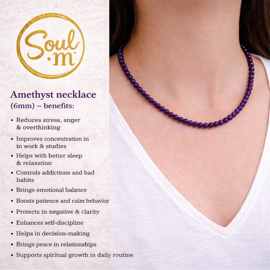 - Promotes Calmness and Relaxation: Amethyst is known for its calming energy, which helps reduce stress, anxiety, and tension, encouraging a peaceful state of mind.
