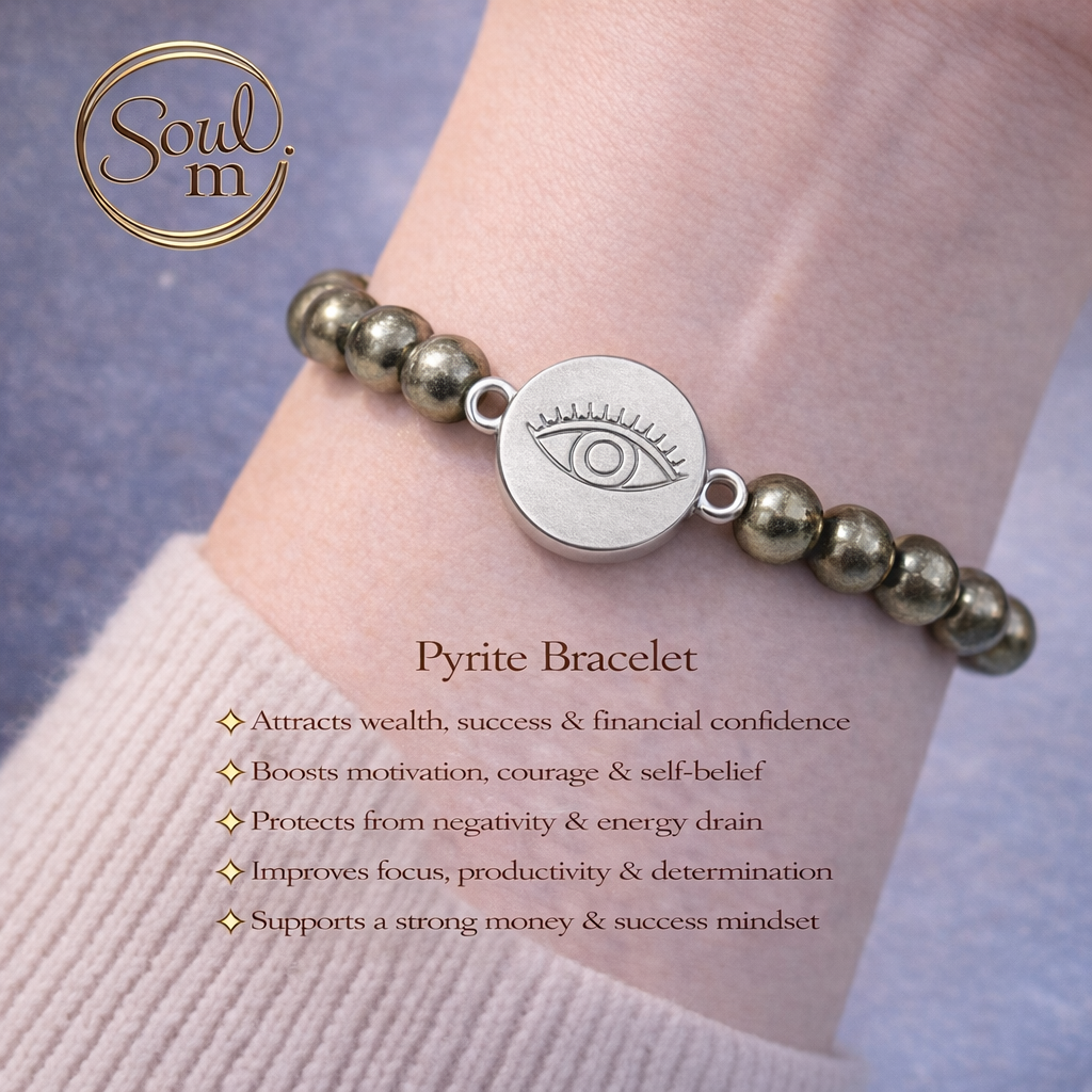 Pyrite Silver Evil Eye Charm Bracelet (8mm) benefits 💛🧿