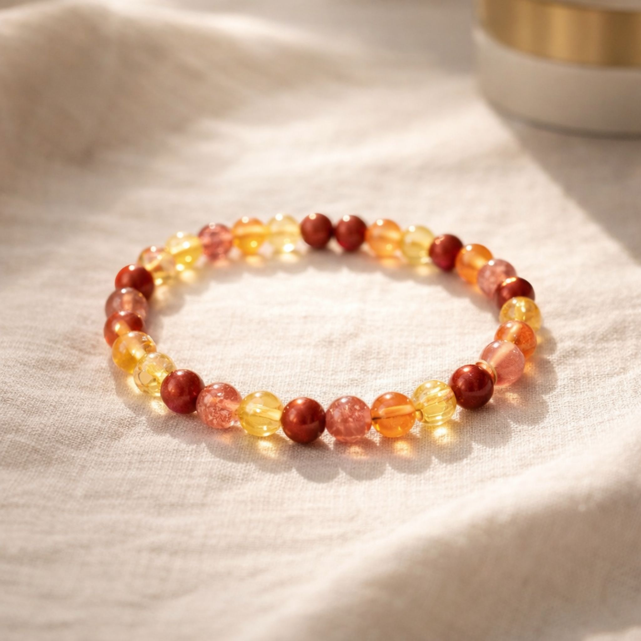 Unlock your true potential with the Soul M Energised Citrine, Carnelian, Strawberry Quartz, and Red Jasper Bracelet. This powerful combination is designed to boost confidence, enhance career success, increase attraction, and ignite personal vitality. Each crystal is carefully selected and spiritually energised to support your goals and energy. Citrine sharpens focus and draws abundance, Carnelian builds courage and creativity, Strawberry Quartz adds charm and emotional warmth, while Red Jasper grounds and strengthens. Ideal for professionals, students, artists, or anyone starting a new journey, this bracelet supports emotional strength and motivation. It aligns with Jupiter, Mars, and Venus energies, making it especially beneficial for Sagittarius, Pisces, Aries, Scorpio, Taurus, and Libra. Wear it daily to stay confident, grounded, and radiant. Choose Soul M for genuine, purpose-driven healing jewellery.