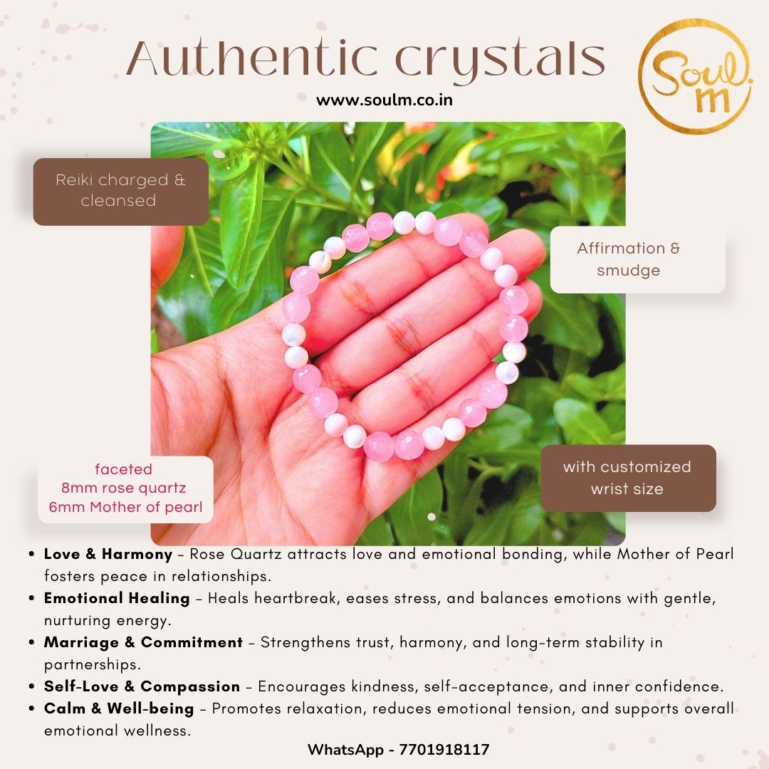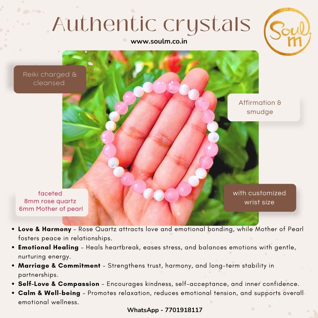 - Love & Harmony – Rose Quartz attracts love and emotional bonding, while Mother of Pearl fosters peace in relationships.