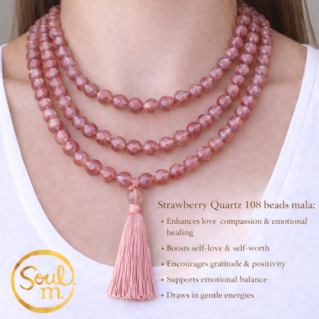 Strawberry Quartz Faceted Mala (108 beads) benefits 🍓💗📿